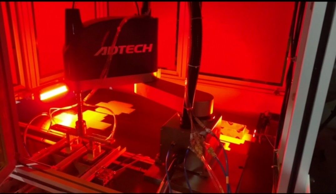 5メガピクセルの産業用カメラ2台とYAMAHAロボットアームを使用して位置決めを行い、高い位置決め精度(±0.1mm)を実現します。