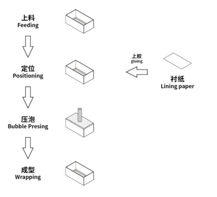 Instead of manually pasted paper, the adhesive quantity is even and firm, and the machine can beconnected for production or used alone.